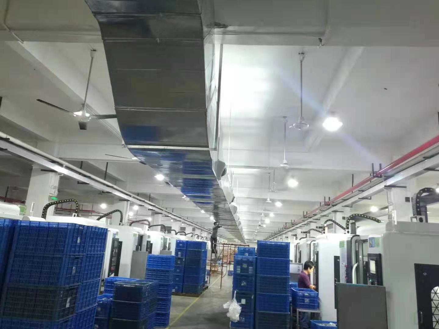 一般模具車間中的機械設備分布比較緊密,而像CNC設備、鉆床、磨床、銑床等機械設備在工作當中都會發(fā)熱,持續(xù)的工作發(fā)熱會使得車間內的溫度不斷的升高,伴隨著發(fā)熱的是設備生產過程中自帶的粉塵和異味。有些設備甚至會產生一些油霧。CNC工廠車間設備機器較多,整體發(fā)熱量較大,使車間內的溫度迅速上升,室內的空氣不流通,車間最高溫度可達到42度左右,如果不采用各種降溫設備降溫,員工基本上沒辦法工作。